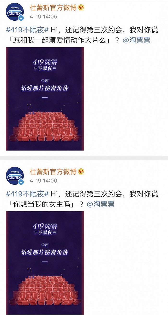 老司机杜蕾斯,也曾经因为低俗文案翻车,在2019年4月19日,它与喜茶、淘票票联动的一系列社会化营销引发巨大争议,“今夜一滴都不许剩”“今夜钻进那片秘密角落”“今夜喂饱每一张嘴”等广告因违反广告法而被罚款80万元。