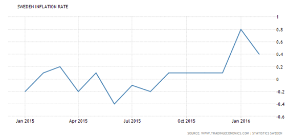 相比之下,瑞典央行的负利率措施旨在推升通胀。不过,该行却没有达到目标。如下图所示,自2015年年初以来,瑞典的国内通胀率一直位于1%以下。