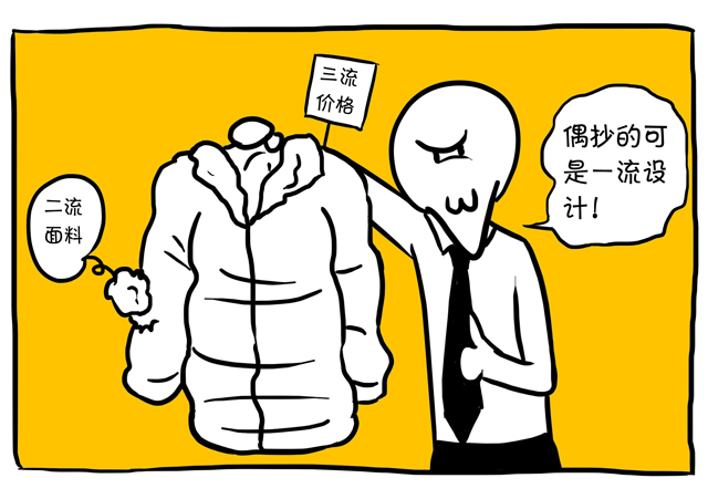 奥特加对ZARA品牌的定位是“平民的时尚”。对于这个品牌,你只要记住“一流的设计、二流的面料、三流的价格”就可以了。设计是仿的,面料确实一般般,价格嘛,对于平民来说,踮踮脚就能够够得到。