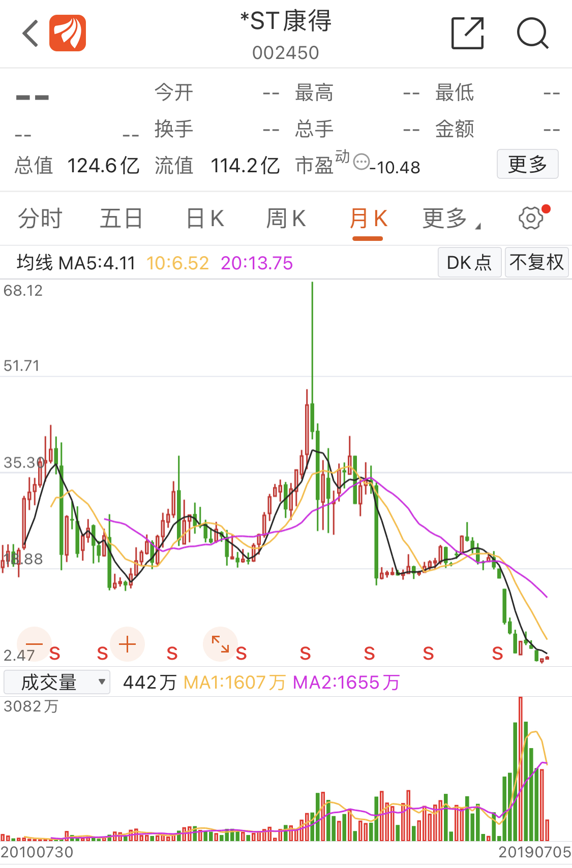 2019年7月8日,康得新股票开始停牌,至今未能复牌。2020年7月10日,因2018年、2019年连续两个会计年度财务会计报告被出具无法表示意见的审计报告,康得新暂停上市。
