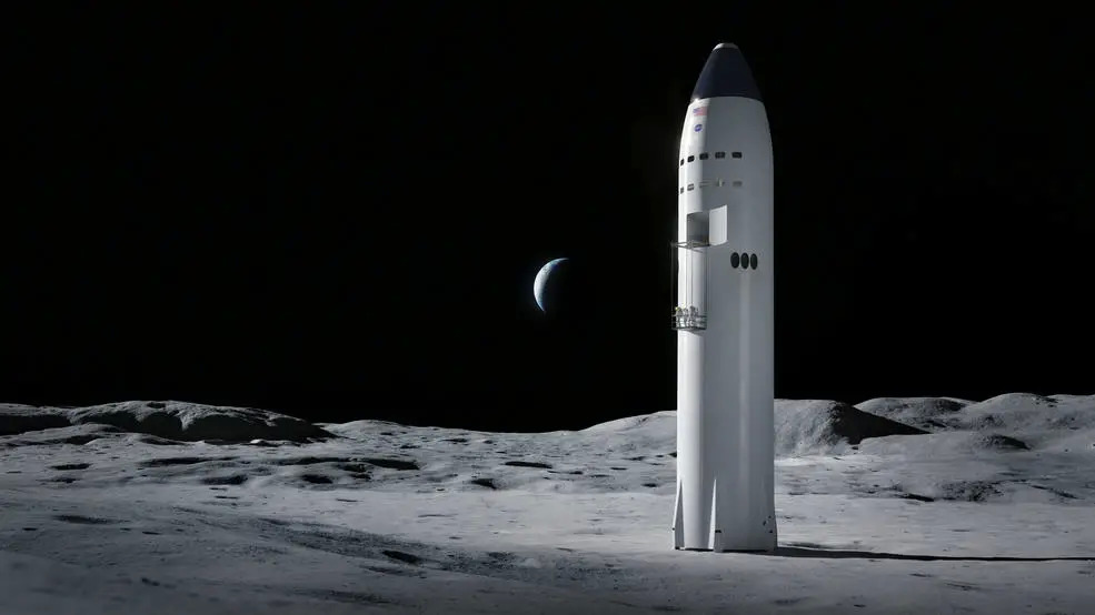 星舰着陆月球想象图, 出舱口距离地面的高度确实需要一部电梯 |teslarati.com
