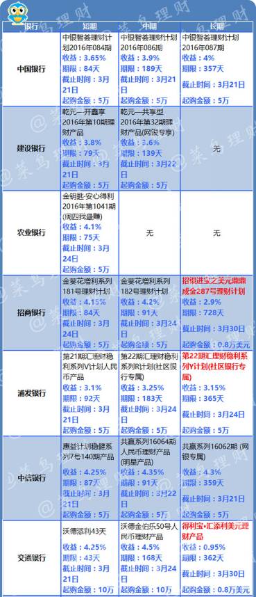 银行理财产品风险非常小,主要看收益。短期:3个月以内;中期:3个月~1年;长期:1年以上。