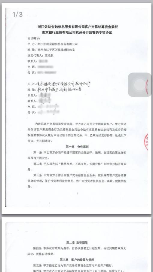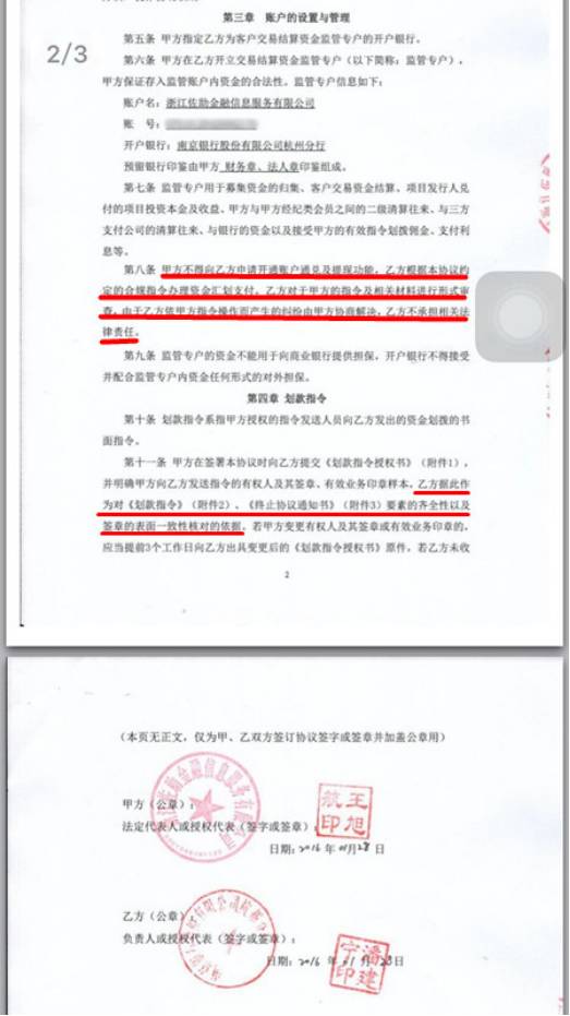 从协议内容来看,牛板金和南京银行的监管协议就是,甲方(牛板金)在乙方(南京银行)开设一个账户,专门用于交易资金的结算。