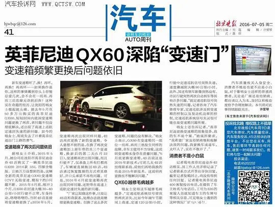 我们有必要简单回顾3·15晚会曝光的英菲尼迪QX60变速箱问题。