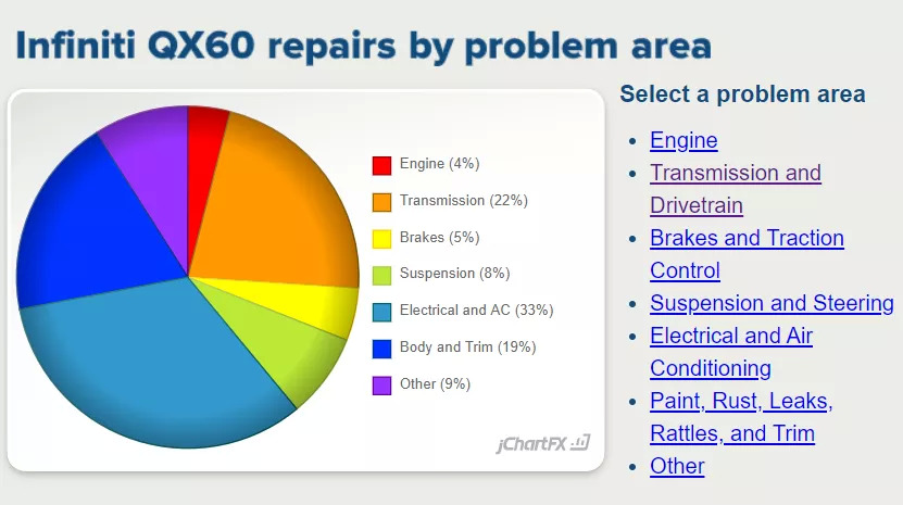 海外市场对QX60故障问题的统计,变速箱占比22%