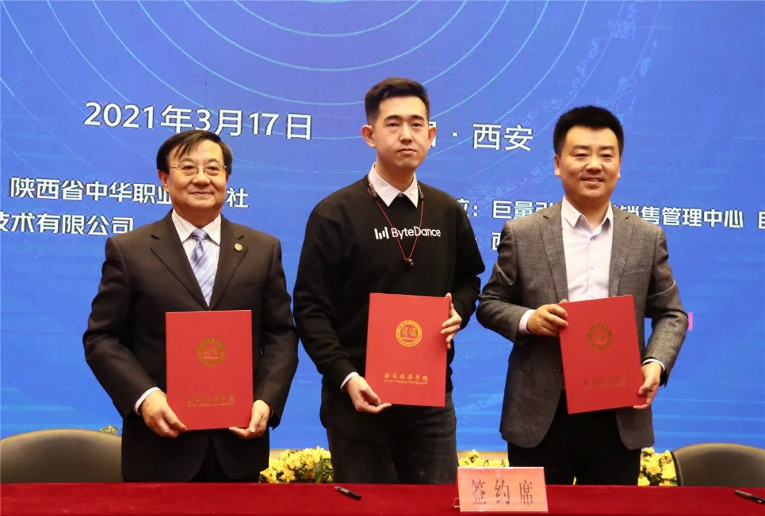 据悉,聚创联盟将产学共建的合作模式引入陕西,携手西安培华学院和西安微聚信息技术有限公司共同培养直播电商、短视频内容创作、数字营销人才,校企合作,产教融合,打造立体化系统性的培育分层方案,以品效协同、内容营销、短视频创意和抖音电商为四大共育方向,推动大学生就业、创业,为行业培养输送优质人才。西安培华学院作为聚创联盟产学共建陕西省首家合作院校,未来将携手巨量引擎、巨量大学、西安微聚继续不断深化产学共建,推动行业人才培养体系愈发完善,助力营销生态健康发展。