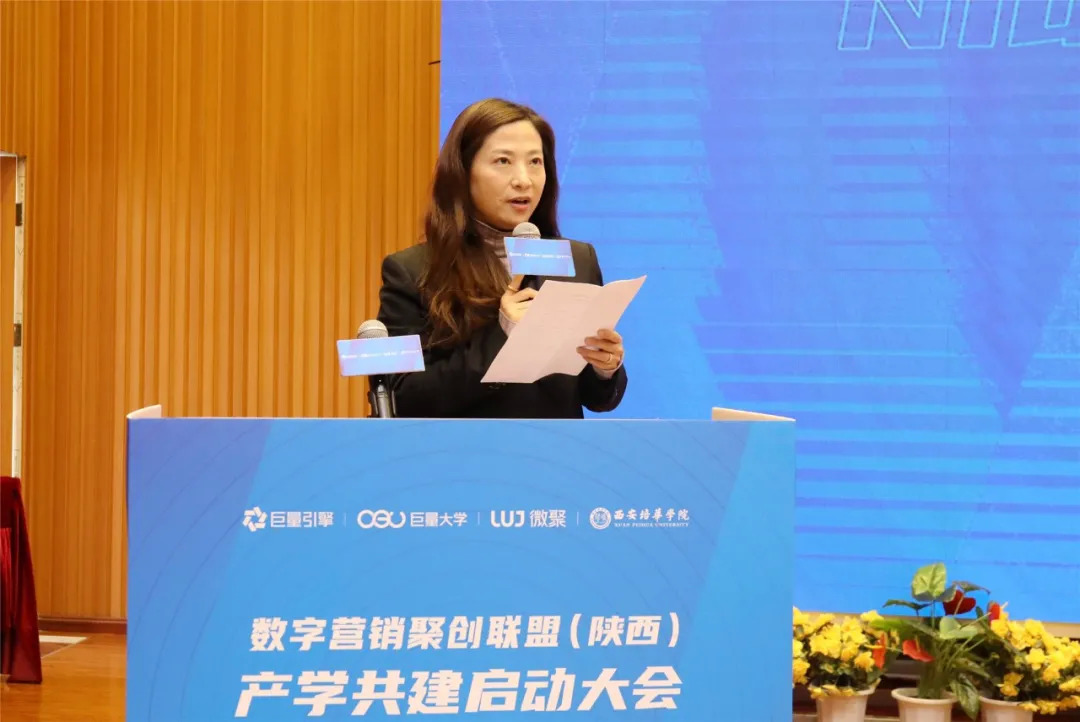 3月17日,数字营销聚创联盟(陕西)产学共建启动仪式在西安培华学院举办。西安培华学院名誉校长胡石英,陕西省委教育工委、省教育厅二级巡视员曹岩, 陕西省中华职业教育社副主任兼秘书长王彦平,陕西省教育厅民办教育处处长陈国栋、高等教育处副处长刘辉,巨量引擎区域渠道西北大区总监常雯、巨量大学运营总监孙亚伟,西安微聚信息技术有限公司董事长牛蕾蕾、总经理唐毅,致公党中央教育委员会副主任、陕西省政协常委、西安培华学院理事长姜波、校长李映方、常务副校长胡俊生等领导领导出席活动,共同见证了数字营销聚创联盟(陕西)产学共建项目的启动。