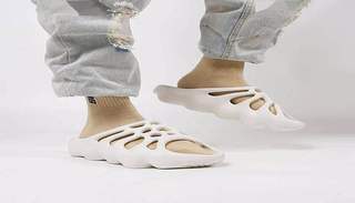 Yeezy 450 Slide鞋款鞋面结构类似Yeezy 450外形,网状覆盖脚面。