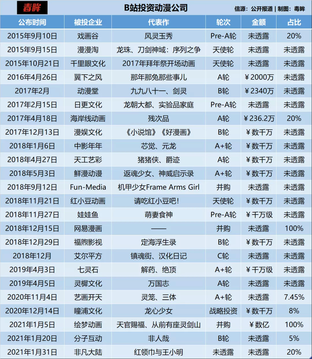 另外,据“雷报”分析,B站持股5%、耗资2200万元投资的动画公司或是分子互动,目前估值约4.4亿元。