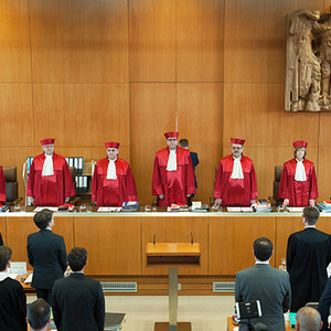 宪法法院院长佛斯库勒(Andreas Voßkuhle)请众人就坐。审判就此开始。