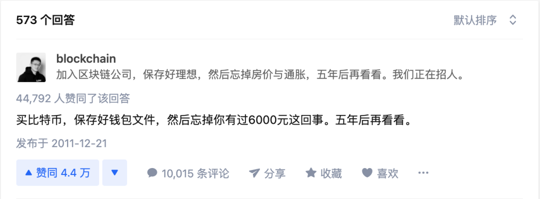 从此之后,每逢比特币大涨,该问题下不断涌现的评论似乎总是提醒她,你错过了暴富机会。
