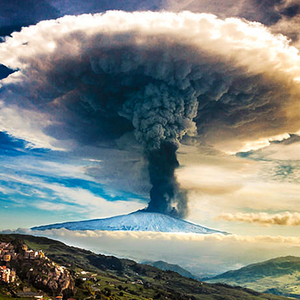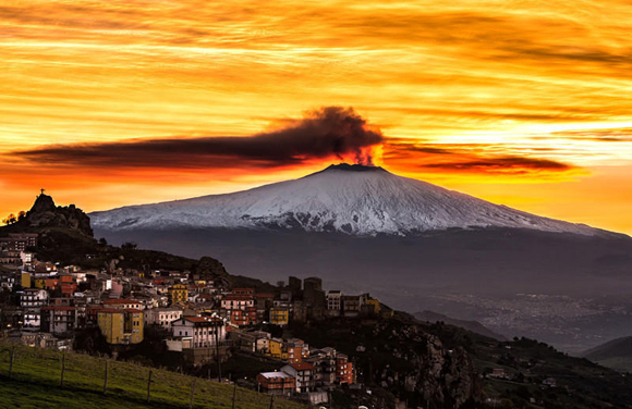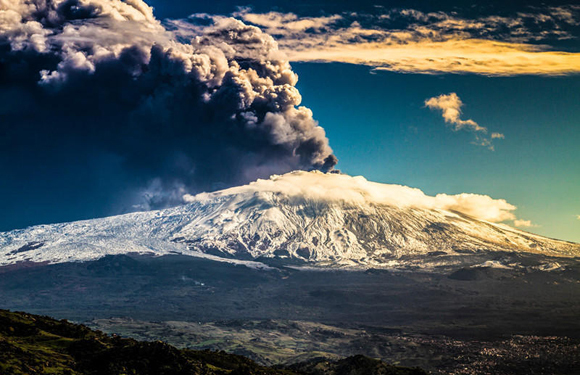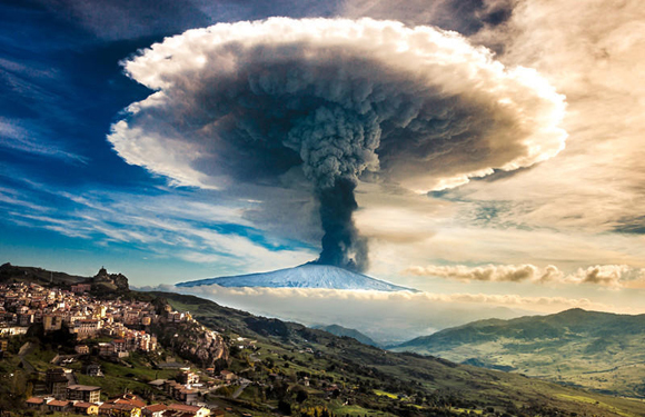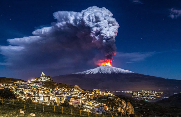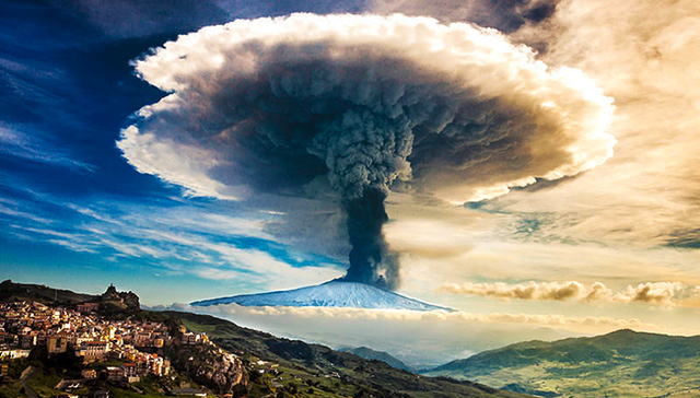 2. 在他捕获的这组照片中,火山烟柱如同一朵核爆炸云在埃特纳火山上空炸开,直冲云霄,气势相当壮观,让人不得不感叹,西西里人究竟是如何在这座魔鬼般地火山下得以生存的?