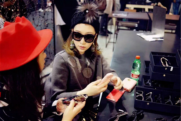 流行趋势当然也是她在选品时的基准之一,“眼镜的潮流更迭没有服装那么快,但也有”。Yooni 举例说前两年一下子开始流行反光镜片,2015 年纯平镜片走红,今年又开始时兴彩虹色镜片,即在原来反光基础上,加入渐变效果。除此之外,还会出现磨砂、亚光镜片。不过,就算选品考虑再细致,也抵不过“明星同款”四个字,因为李晨 po 图上门按图索骥的顾客不在少数。她无奈地说:“中国是一个很奇葩的市场,所以有人说,中国市场可以很大也可以很小。其实很多时候,我们店里很多品牌卖得好一方面就是因为运气。”