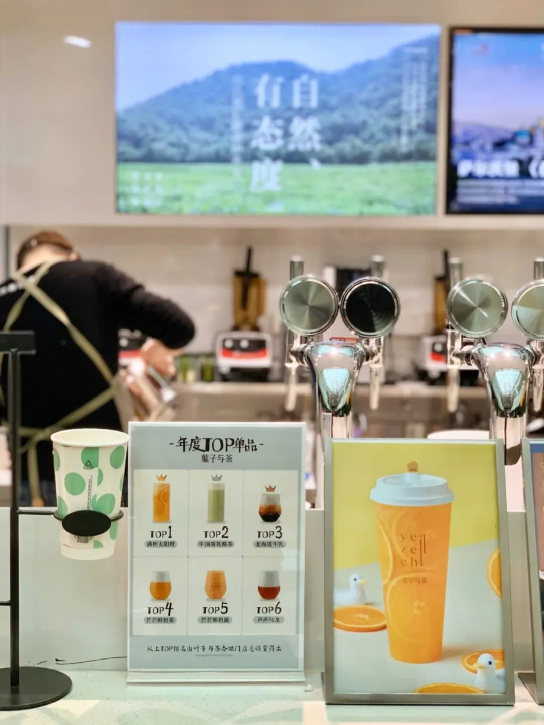 叶子与茶在门店海报、电视屏展示