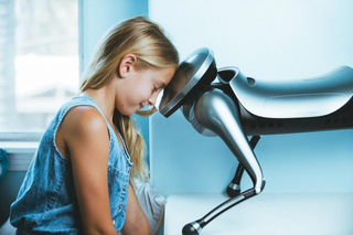 眼睛部分结合了计算机算法的摄像头,不仅能看见东西,在看到人脸时还会保持眼神交流;