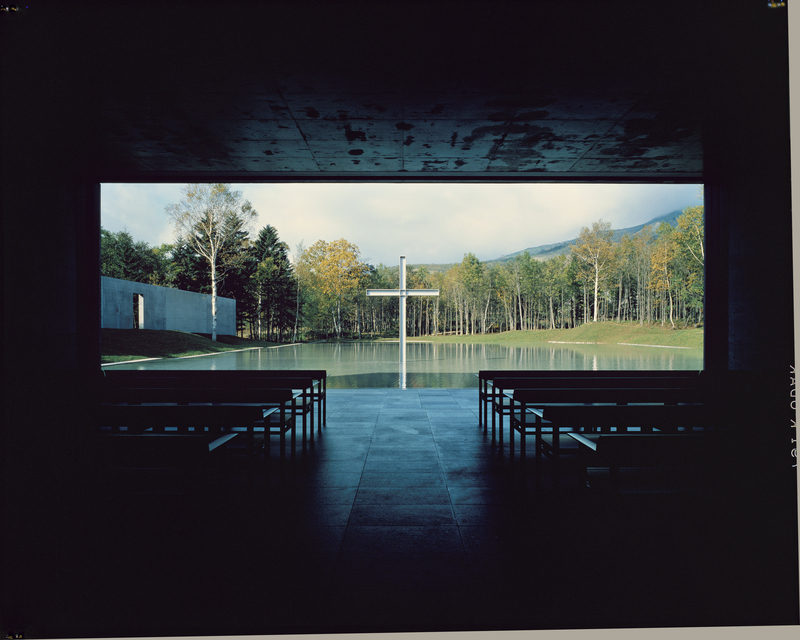 事后回想,安藤认为自己能在日本这个学历社会以“野生建筑师”身份打开局面的原因或许正在于此:在什么都没有的情况下自行构思、储备创意,并在机会来临时主动出击,把想法大胆推介出去。这样做让他幸运地获得了一些建筑项目,例如1988年在北海道建成的“水之教堂”。“水之教堂”的最初构想源自八十年代中期安藤在神户六甲山上建教堂时的灵机一动,“在正对面的土地上,例如在海的边际那端盖一座教堂,应该很有意思吧?”1987年春天,安藤在展览会上发表了他构想的海边教堂模型,会场上一位来宾看中了这个设计,委托他在北海道勇拂郡一正在开发的度假村内设计一座河边教堂。就这样,梦想照进了现实。
