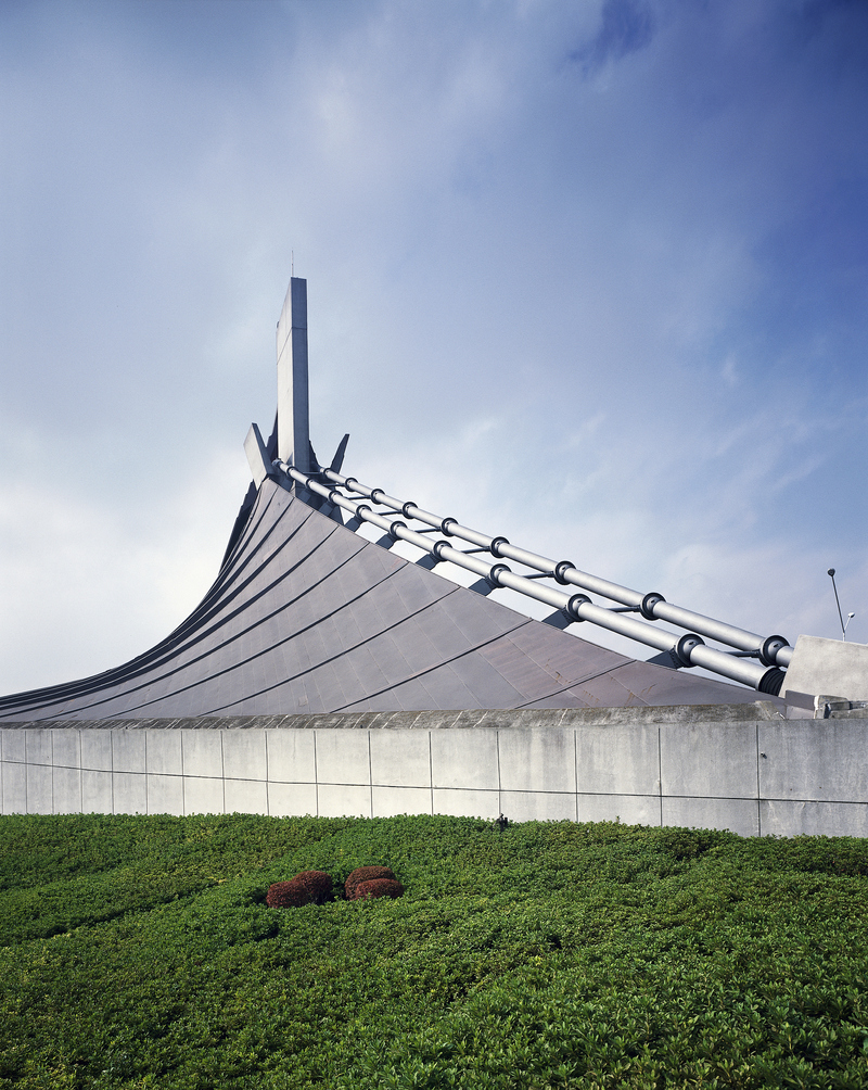 到1960年代,丹下健三为1964年东京奥运会设计的国立代代木竞技场成为了改变日本近代建筑史的里程碑式作品。五十岚太郎认为,丹下通过将日本传统建筑的形态抽象化,以达到了与传统相结合的目的。在国立代代木竞技场的设计中,他尝试用大屋顶进行象征性的日式风格表达,仔细观察该建筑的屋顶,其中一些部位不免让人联想到民居的屋脊和神社的千木(注:在神社建筑的屋顶两端,沿着屋面的角度相交于屋脊处并伸出屋面的木质构件)。
