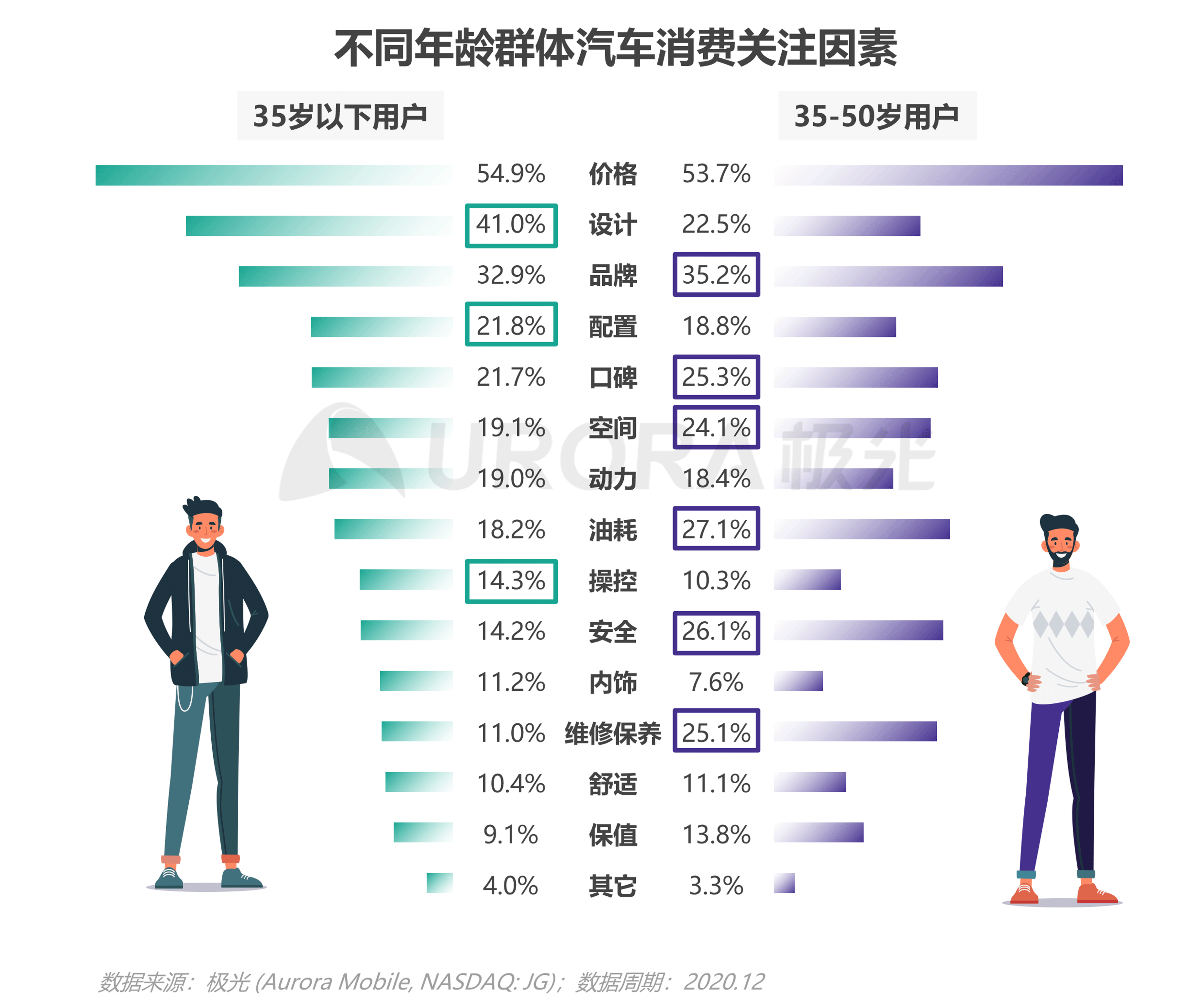 不同年龄群体汽车消费关注因素