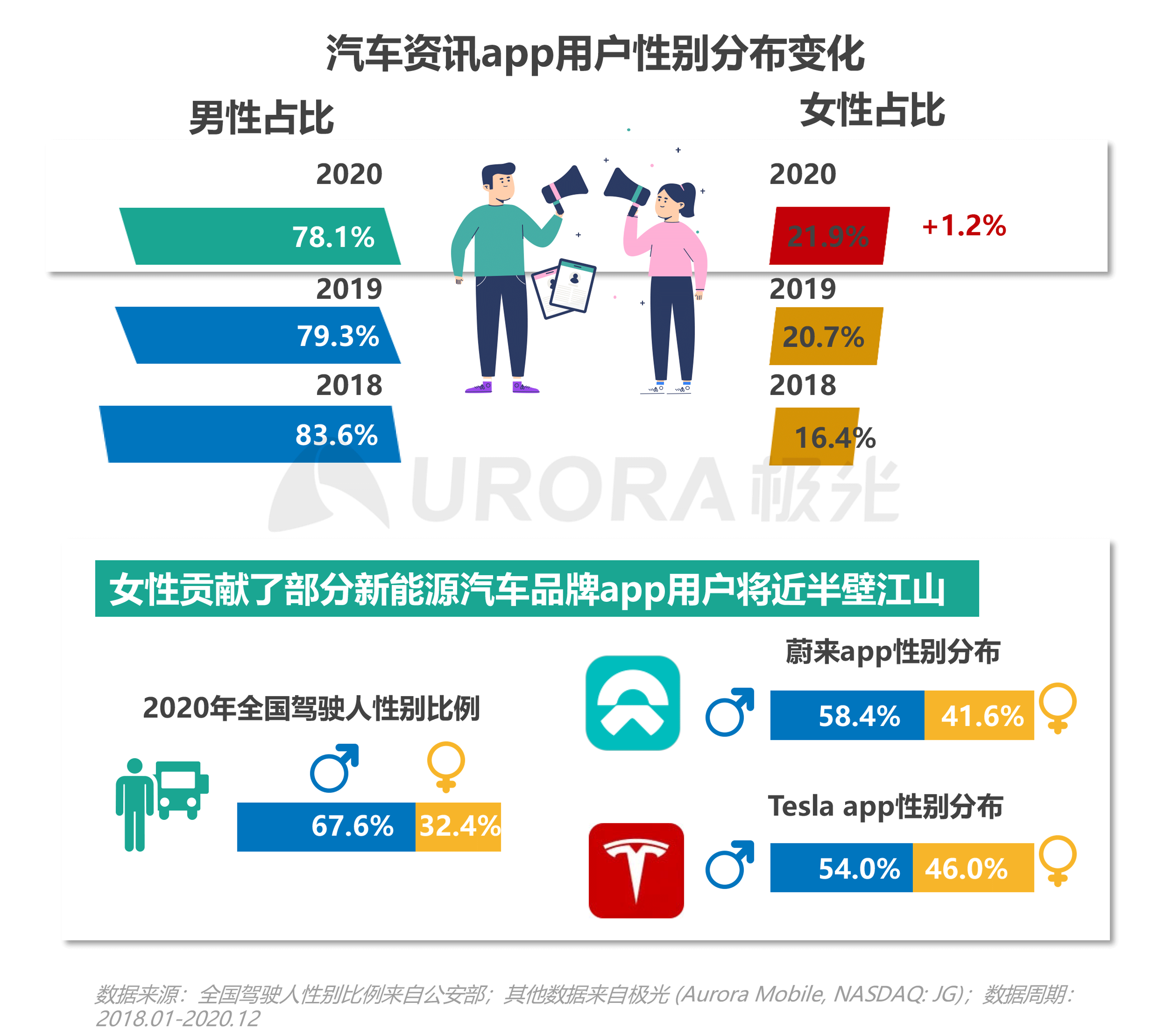 3、女性影响力持续提升,2020年汽车资讯女性用户占比提升1.2个百分点。