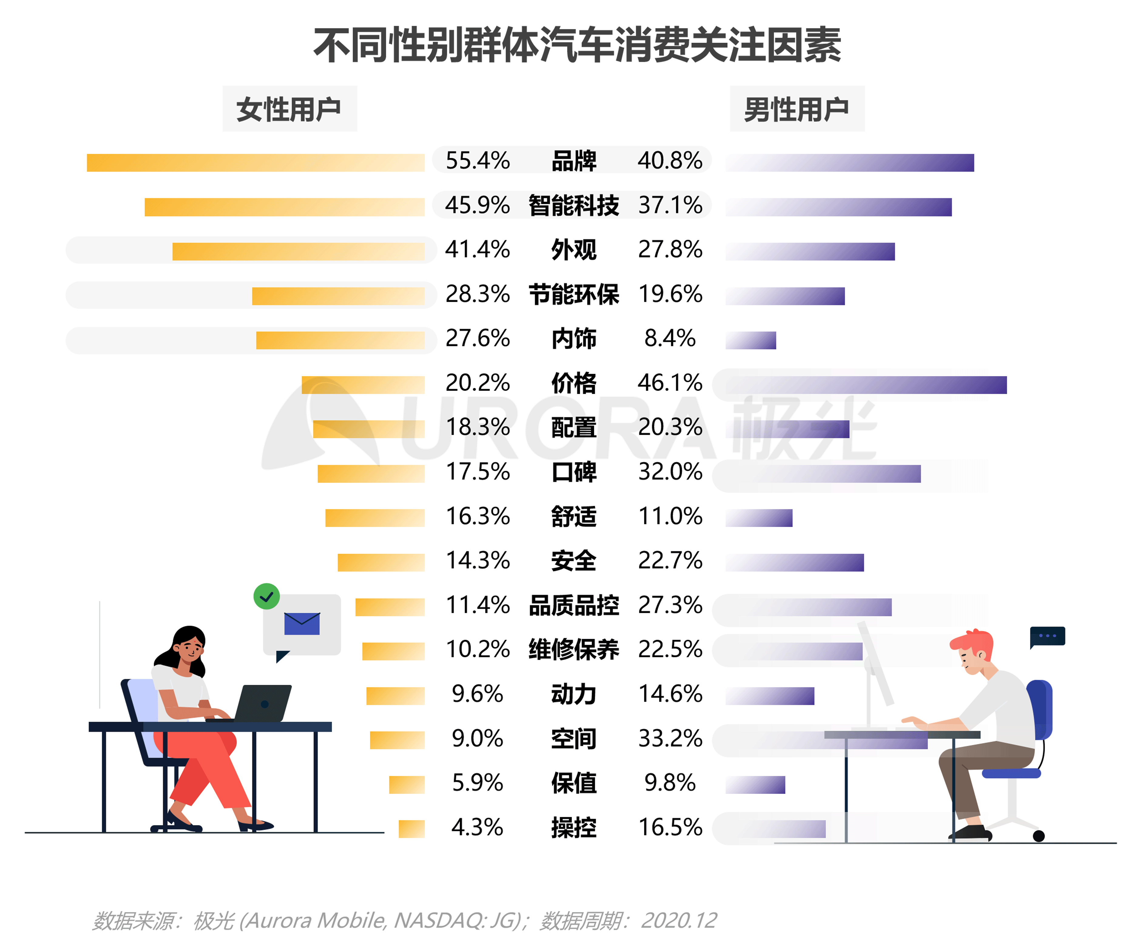 不同性别群体汽车消费关注因素