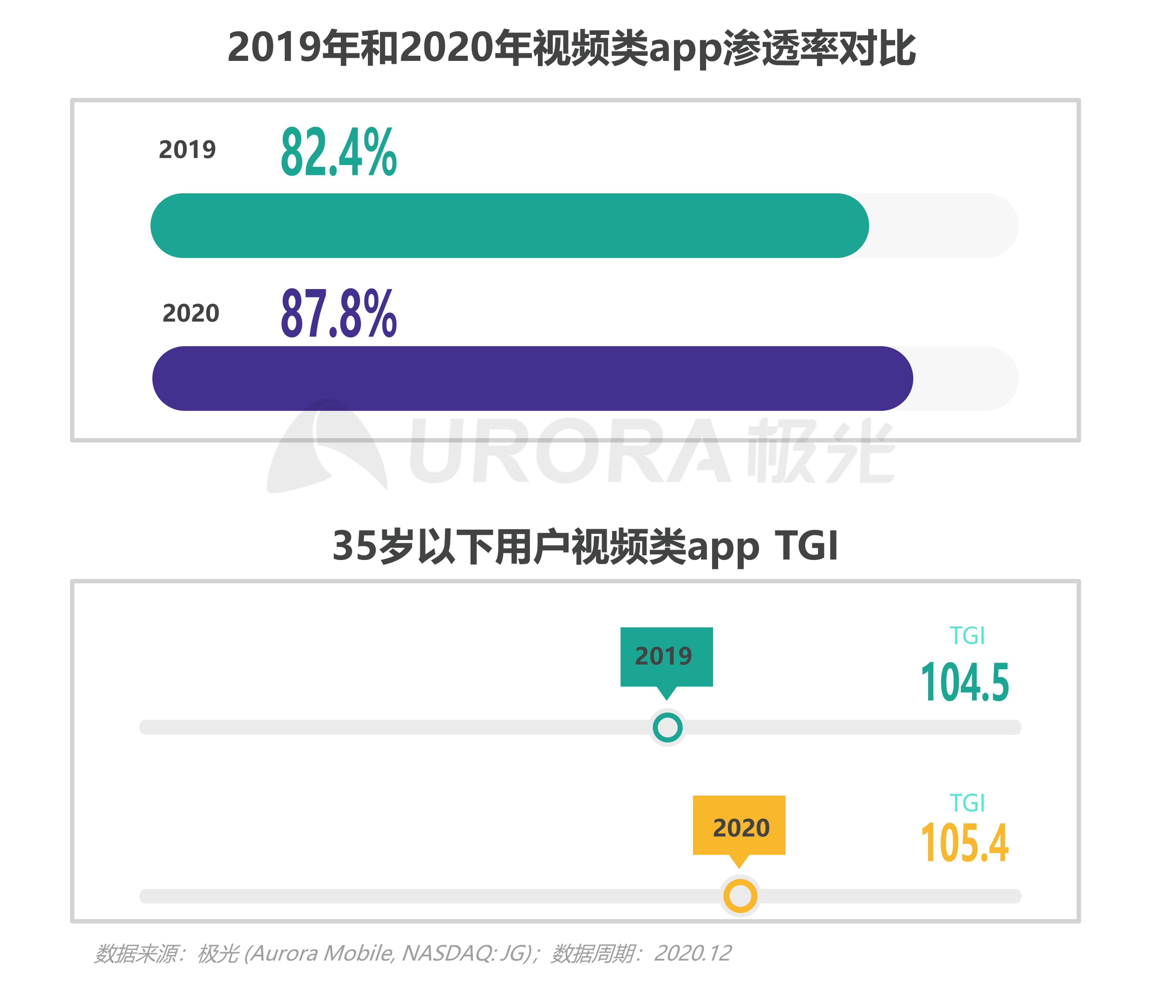 2020年,视频类app在移动网民中的渗透率达87.8%,比上年提升5.4个百分点;特别是年轻用户,短视频内容偏好呈上升状态,视频类app TGI由2019年的104.5上升至2020年的105.4;视频类形式内容不仅是占领用户停留时间的关键,更是年轻群体的触媒偏好。