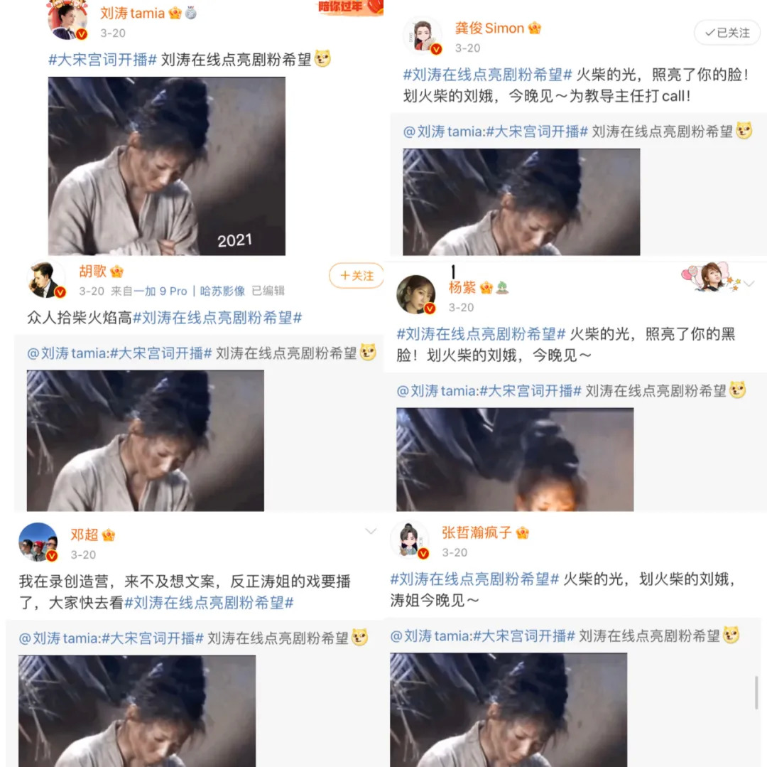 李少红2000年执导的《大明宫词》豆瓣评分至今仍保持在9.1,《大宋宫词》自宣布制作伊始也一直将“品质”作为营销宣传的核心落点。而首播当天,刘涛以及龚俊、张哲瀚、邓超、胡歌、黄晓明、刘亦菲、赵薇等半个娱乐圈明星带起的打call话题#刘涛在线点亮剧粉希望#,更将大众对《大宋宫词》的期待值和品质的好奇心送至顶峰。