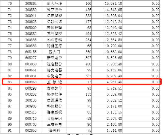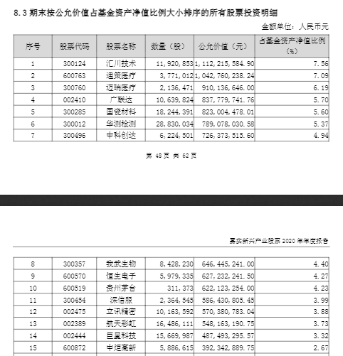 截至2020年底,贵州茅台成为嘉实新兴产业股票前十大重仓股中唯一的一只白酒个股,五粮液位列第83位,仅剩余17股。