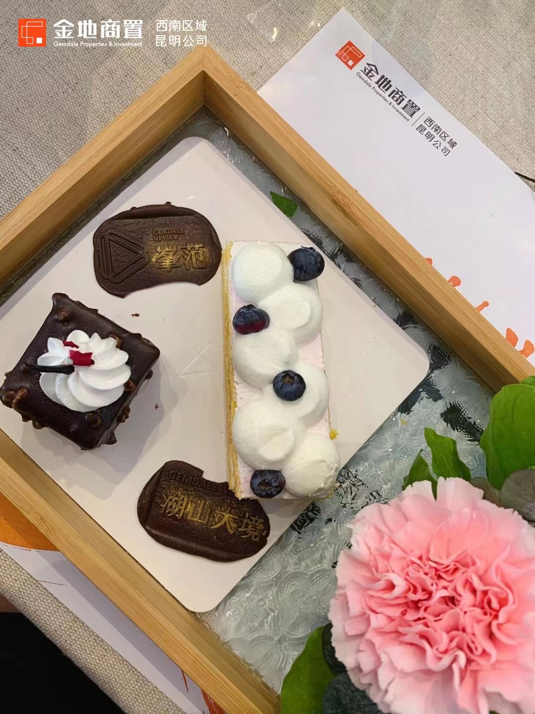 专属定制双Logo案名的甜点营造出不一样的神秘感,将现场气氛烘托至了高潮。如此新奇别致的点心,也让『金地鹏达·峯范』『金地锦康·湖山大境』项目名称深入人心,传播力十足。