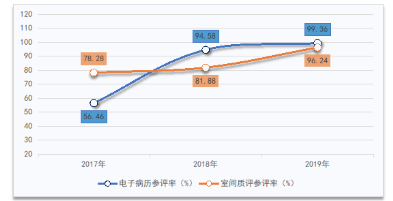 值得注意的是,2019年,中国首次次将住院病案首页数据应用于三级公立医院绩效考核。住院病案首页数据质量的提升,可以为获得更加客观、公平的绩效考核结果提供有力保障,亦是公立医院高质量发展的基础。《考核》显示,2019年三级公立医院住院病案首页数据项目完整率为99.99%,较2018年提升8.41个百分点;数据准确率为98.28%,较2018年提升16.52个百分点。
