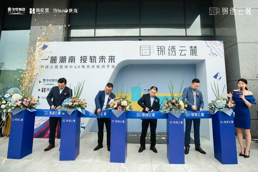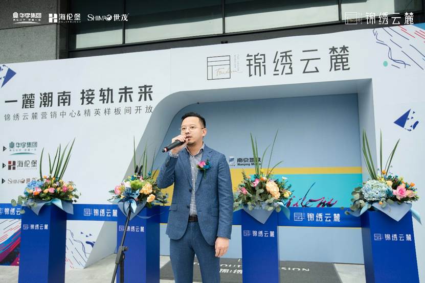 华宇集团江苏区域锦绣云麓项目总经理张家兵先生,海伦堡华东区域南京城市公司营销总监程嗜斌先生,世茂南京城市公司环南京项目群负责人、锦绣云麓项目联席总经理舒红胜先生,营销负责人陈雷先生等一行领导上台共同为公开仪式剪彩,“地铁车门”同步开启,一场寄托高品质人居的时代探索,前往锦绣春天的入口,于此缓缓拉开。