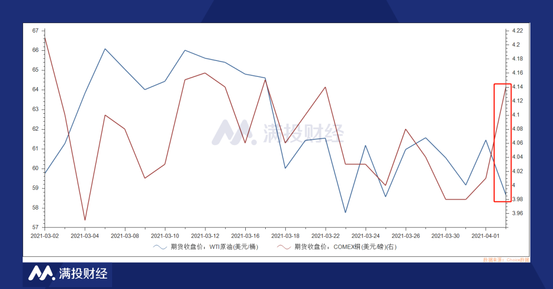4月5日国际油价格大幅下跌,美油5月份合约跌超4%,跌破60日均线;而CMX铜期货却大涨3.7%,创六周以来最大的涨幅。这种油铜价格的大背离,在大宗商品的市场中实属罕见,那么是什么原因让油铜价格背离呢?