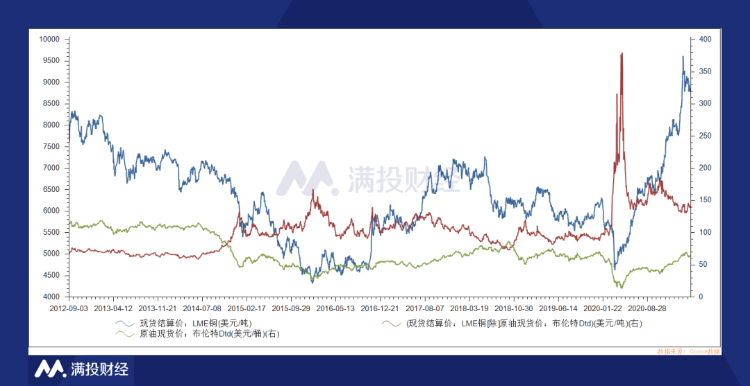 2018年至2019年,铜油比价的上涨主要是中俄美关系的恶化以及国际原油组织增产导致原油价格的下跌。2020年主要是受疫情影响,人们出行受阻,国际原油需求出现断崖式下跌所致。