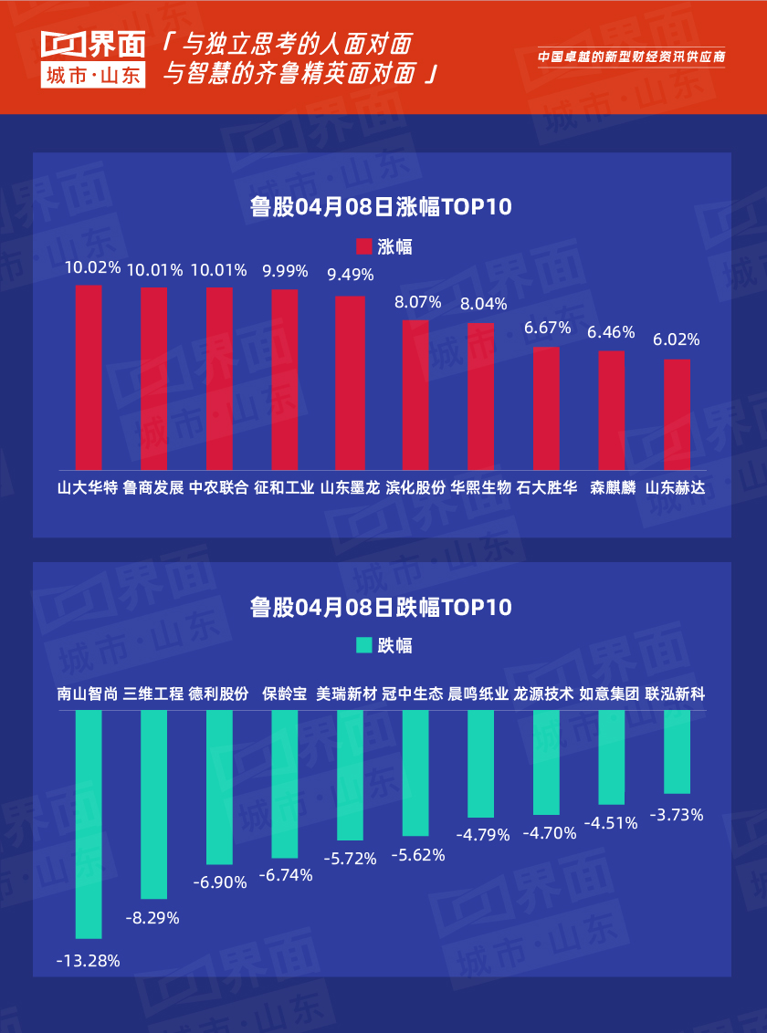4月8日,山东85股上涨,140股下跌。