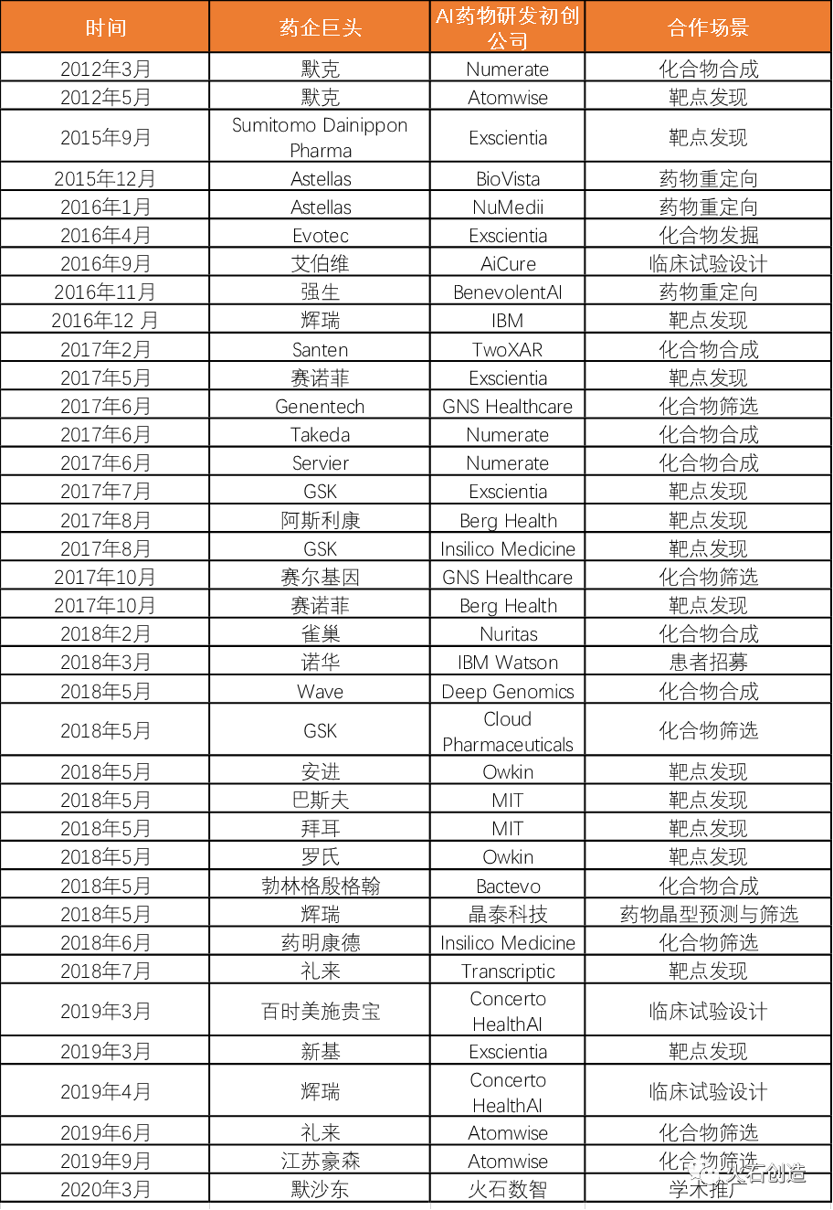 最早的是默沙东(美国默克),2012年与美国AI药物研发公司Numerate合作进行心血管疾病靶点研究。