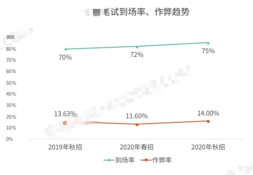 根据某笔面试题库网站发布的2020年秋招招聘数据显示,2020年秋招,该网站共计为超过120万考生提供在线笔试,作弊率为14%,也就是说,10个人中至少有1个人有作弊行为。