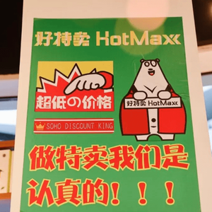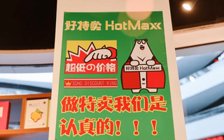 我们探访了位于上海和北京的十多家线下零售折扣店。这些门店的设计统一采用了醒目的正红色,红底白字写着大大的“HotMaxx”,上海美罗城店铺还在门口专门设置了一个红色北极熊雕塑和一块大型电子显示屏,上面实时展示折扣信息,吸引过路人流的注意。