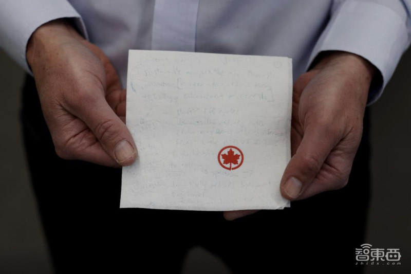 ▲戈德伯格展示写满最初LEO卫星星座想法的餐巾纸