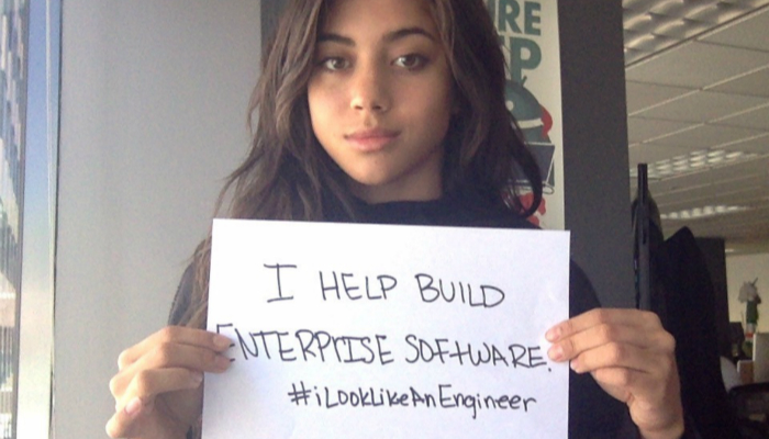 提到IT公司的典型员工,你的第一反应是不是一个戴着厚镜片眼睛、胡子拉碴、埋首在电脑前敲代码的男生形象?这样性别刻板化的印象在人们脑海中十分深刻,以至于2015年8月的时候,一位为公司代言的漂亮女工程师Isis Anchalee在广告发布后被指责她的形象无法让人信服。之后各行各业的女工程师们纷纷出镜,在Twitter上掀了一场“#工程师就长我这样”的激烈讨论,以期打破人们性别偏见的陈旧观念。