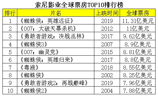 2020年,索尼影业拿下北美票房冠军。