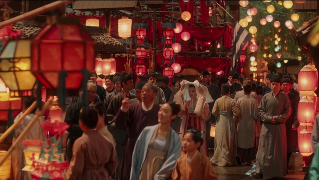 汴京城内正是掌灯时分,百姓们张灯结彩,满城披红挂绿。灯火映照得傍晚那云霞,也泛出浅浅绯红。这是欢欣鼓舞的一天,汴京城里无论男女老少,都沉浸在元宵节前后其乐融融的气氛中。