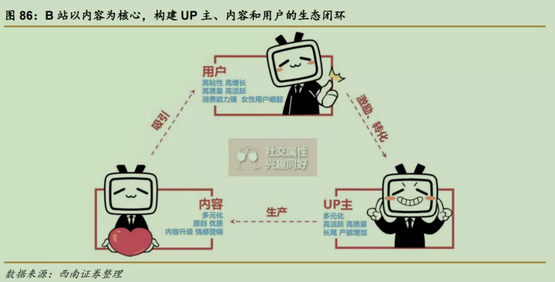 另据西南证据报告显示,B站的成功正是基于用户间的兴趣同好,建立起用户、UP主和内容之间的正向循环,形成了繁荣的生态体系。