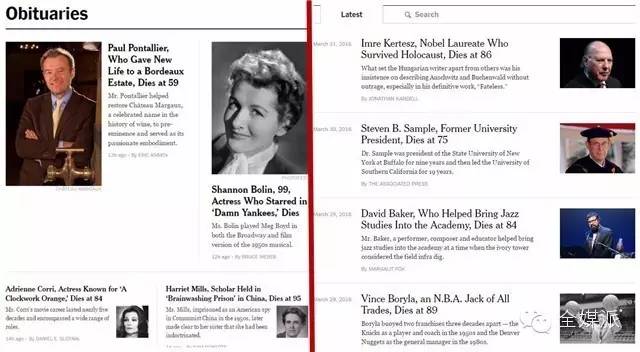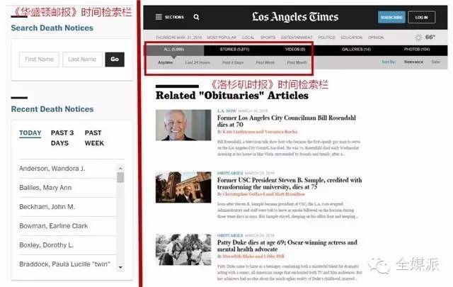 《华盛顿邮报》与《洛杉矶时报》的讣告版面,具有时间检索功能。你可以通过检索发现在同一天离世的人们。有人说,同年同月同日生是一种缘分,同年同月同日离世何尝不是另一种缘分呢?