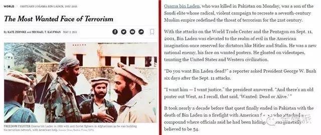 这的确是一篇很长的讣闻,超过了5000字。文章梳理了拉登的家族背景和成长经历,评价了他在世界上的影响力。最难能可贵的是,作者没有陷入“恐怖分子”的身份中,而是将拉登还原为一个有血有肉的人。