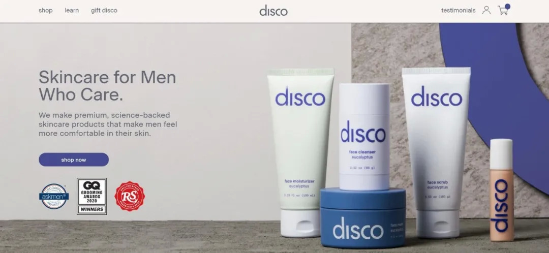 举一个典型的例子。最近,美国男士护肤初创品牌 Disco 完成500万美元种子轮融资。该品牌推出于2019年,公司报告称,自2020年夏季以来月度销售额环比增长达到三位数。