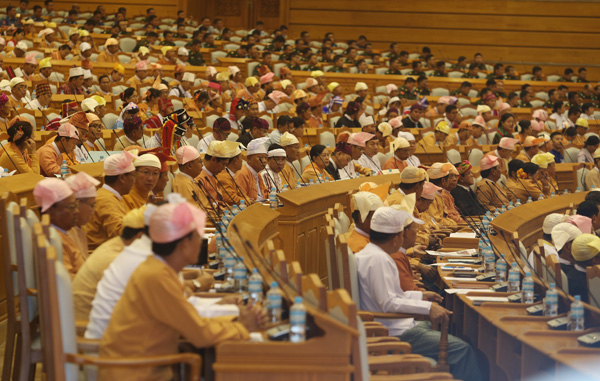 3月30日,缅甸联邦议会代表出席会议。 新华社发 吴昂摄