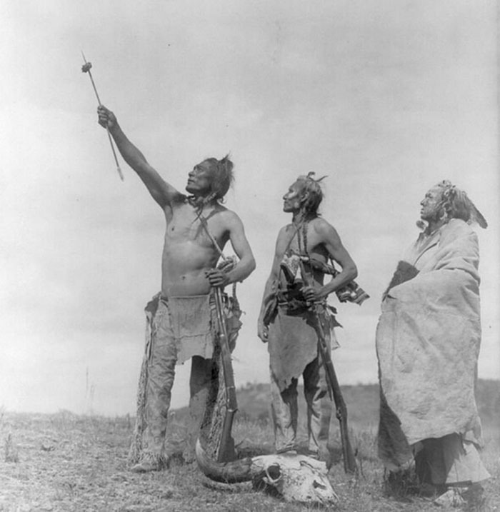 8. 克劳人在起誓时会将一块野牛肉插在箭上。 在他服役期间,Medicine Crow完成了成为一名克劳人战争首领所需要经受的四项考验,分别是触摸一名活着的敌军士兵,夺得一名敌人的武器,带领一支胜利的军队,以及偷得一名敌军士兵的马匹。