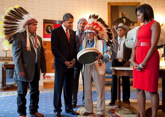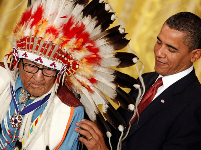 12. 贝拉克·奥巴马总统为Medicine Crow颁发自由勋章。 在2009年,奥巴马总统授予Medicine Crow自由勋章,这也是美国最高的公民荣誉。