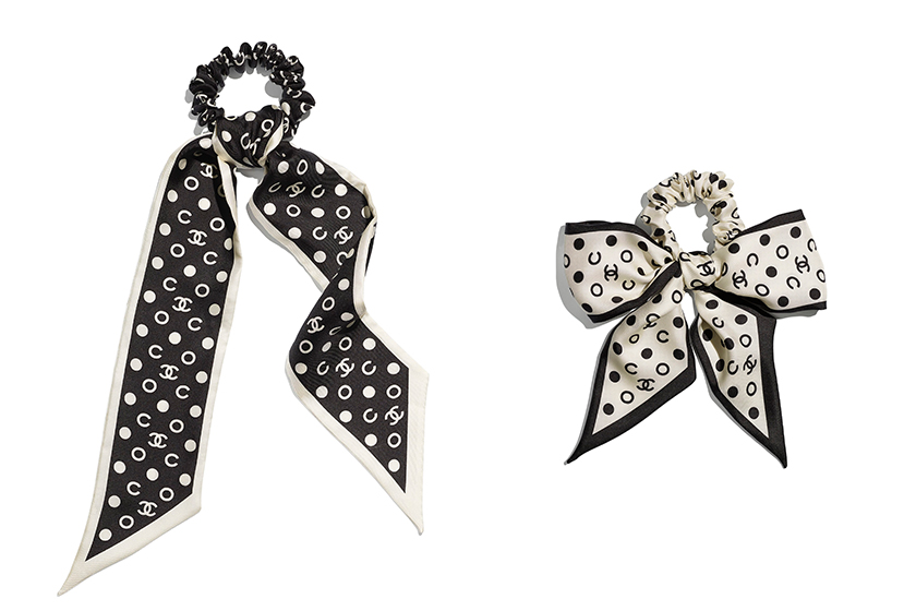 香奈儿2021春夏系列推出的全新多功能发带,以真丝斜纹丝巾组合大肠发圈,既可以作为一件单品使用,也可以一分为二,提供了多种搭配可能。除了可以缀于丸子头或马尾上打造精致发型外,这款发带也可以作为丝巾随性饰于颈间或腕间。