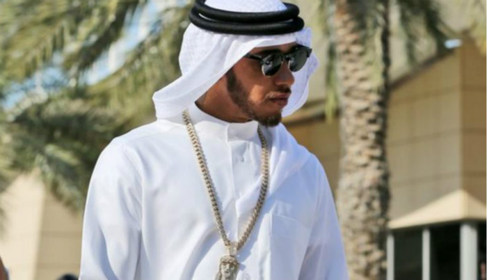 1. 在参加巴林大奖赛之前,汉密尔顿穿上了这一身传统阿拉伯服装。一向注重潮流的他,戴上大链子再穿上这一身白袍后也竟没有一点违和感。不过比赛中出现的小事故让他在本站比赛中无缘冠军。