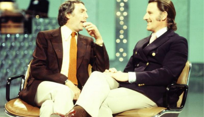3. 英国传奇车手格拉汉姆·希尔(右)活跃在20世纪60年代,他曾经赢得过两座世界冠军。在他的衣着打扮上,英国绅士的特点展露无遗:整齐地梳到脑后的头发、金色双排扣西装、白色西裤和漆皮皮鞋。他的优雅装束让与他并排而坐的主持人相形见绌。